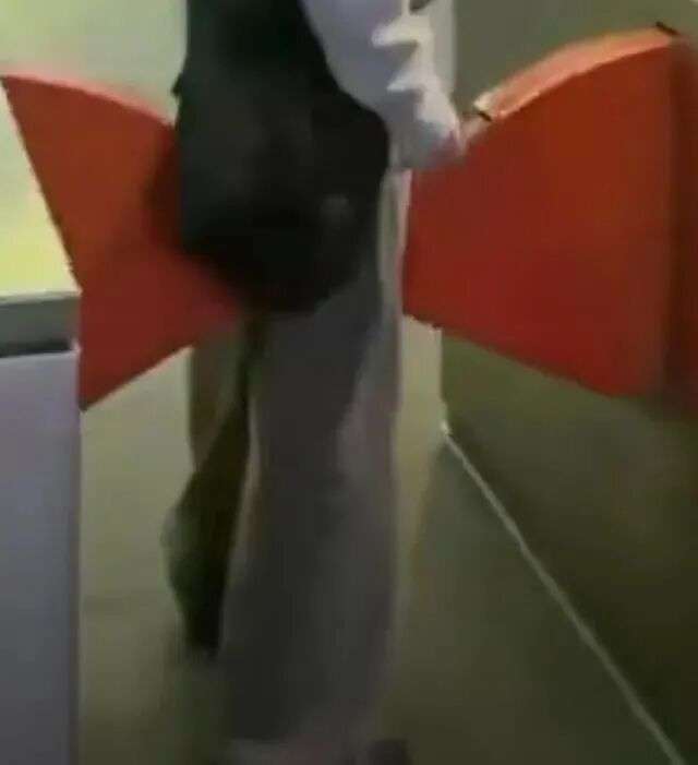 第一种方式,简单粗暴到离谱。不刷卡,找最大的闸机,从中间的缝隙直接钻过去。拍视频的时候,他发现站内工作人员正在盯着他,还明显犹豫了一下,但最后还是硬着头皮演示完了,并轻飘飘地来了一句:“澳洲的青少年都这么干。”