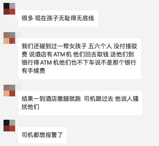 对于留学生的素质,还有做旅游车队的同行出来现身说法,说他们也遇到过五六个女孩子,没付接驳费,说酒店有ATM机要回去取钱。车开到银行,她们又嫌不是这家银行、有手续费。