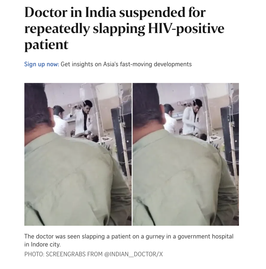 2023年,德里的一家医院的一名初级医生,殴打了一名HIV阳性患者,而这名患者只是要求更快检查。