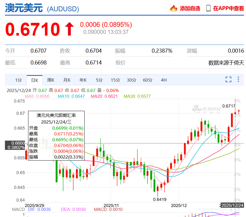 更准确的是,上一次澳元兑美元达到 0.67美元还是在 2024年10月18日,如果你现在正在美国旅行,或者从美国购物网站购买商品,这对你来说无疑是个好消息。