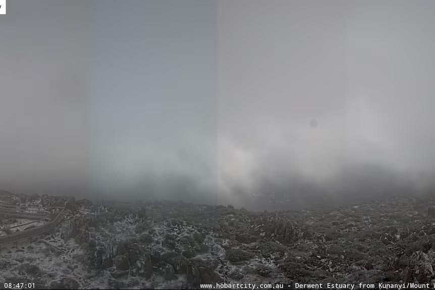据统计,今天早上8点40分,塔州惠灵顿山(Mt Wellington)山顶的温度低至零下1.4度。