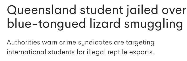 关于走私野生动物的严厉后果,澳洲是早在法律里写了个清清楚楚,奈何在巨大的利益之下,依然有不少的犯罪分子都在选择铤而走险。