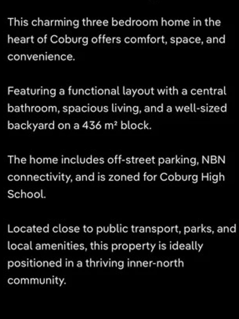 维州Coburg的一套三居室房屋被房东宣传为“迷人”住宅,每周租金500澳元,但照片显示情况完全不是这样。