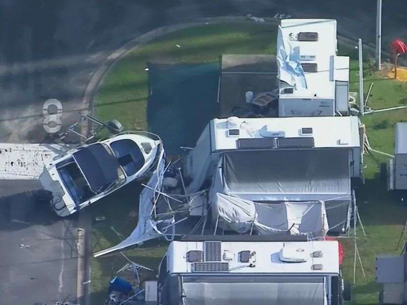 在隔壁的 Broadwater 旅游营地,由于现场遍布残骸,度假游客被要求紧急撤离。