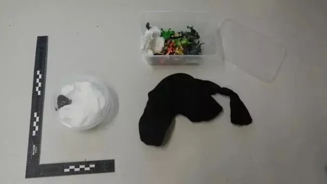 调查人员表示,这些蜥蜴被塞进袜子中,再用锡纸包裹,随后放入真空密封的杯状容器里。