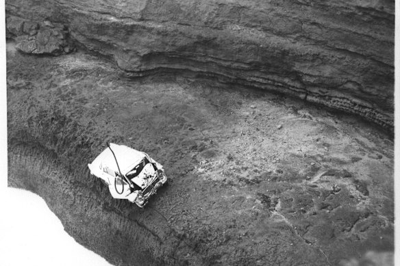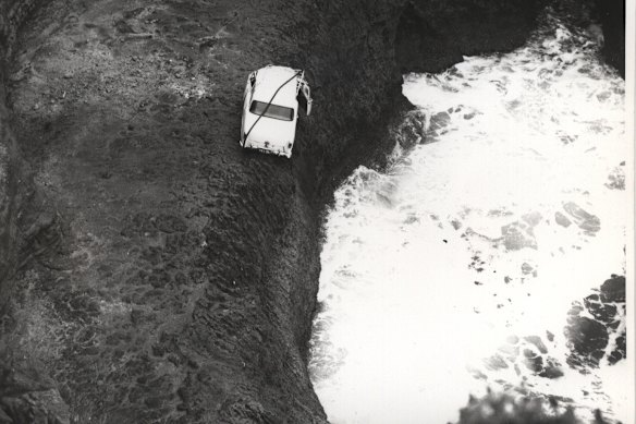 但汽车并未如他预想般沉入海中,而是卡在洞壁16米高的岩石平台上。