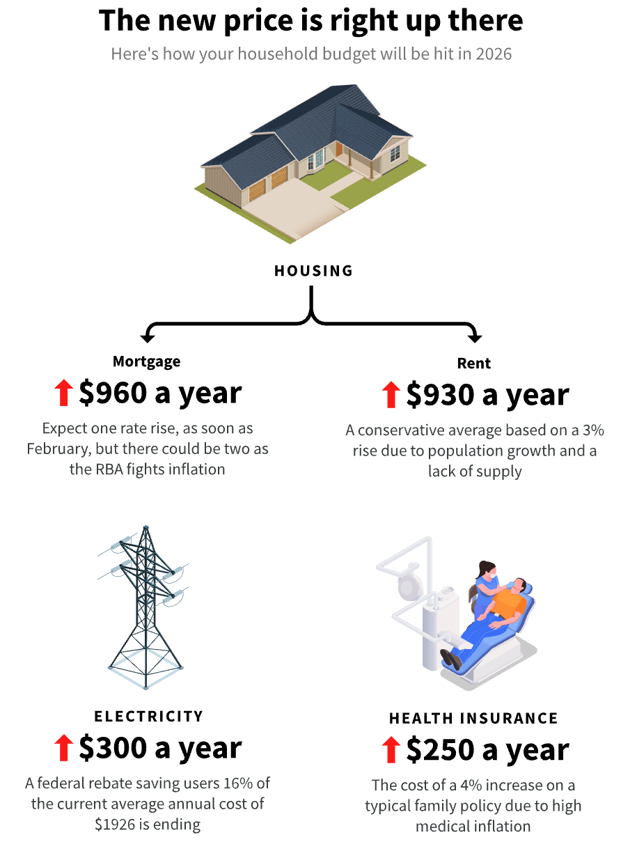 随着新一年临近,澳洲家庭正面临新一轮生活成本冲击。多项最新测算显示,2026 年普通家庭在住房、电力、保险和食品等基本开支上的合计支出,可能比今年再增加约 2000 澳元。在此前多轮涨价已大幅压缩家庭预算的背景下,这一预期被认为将进一步加剧民众的经济压力。