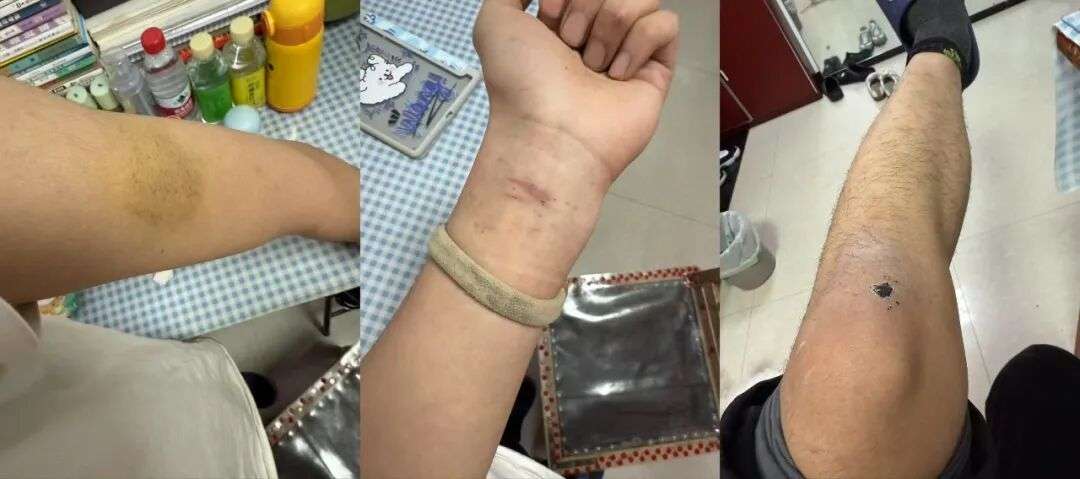 离开“三和尖兵特训营”当日,刘成在医院里拍下身上的部分伤痕/受访者供图