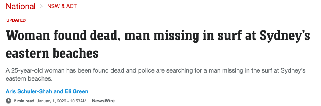 收藏新年噩耗! 悉尼海滩中国女子死亡, 还有人仍失踪! 警方紧急逮捕40人...这件事千万警惕