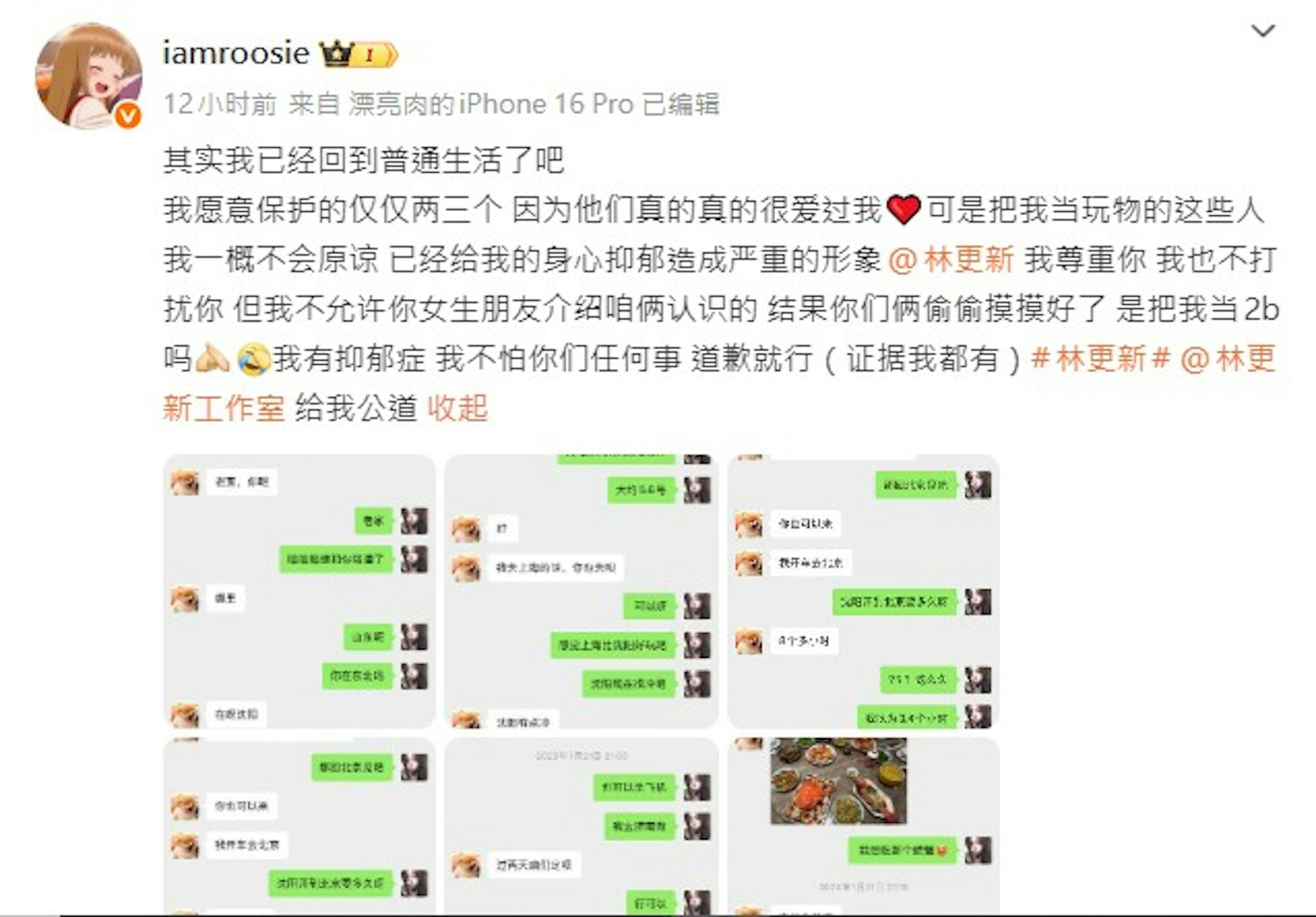 司晓迪iamroosie要求林更生道歉。(微博截图)