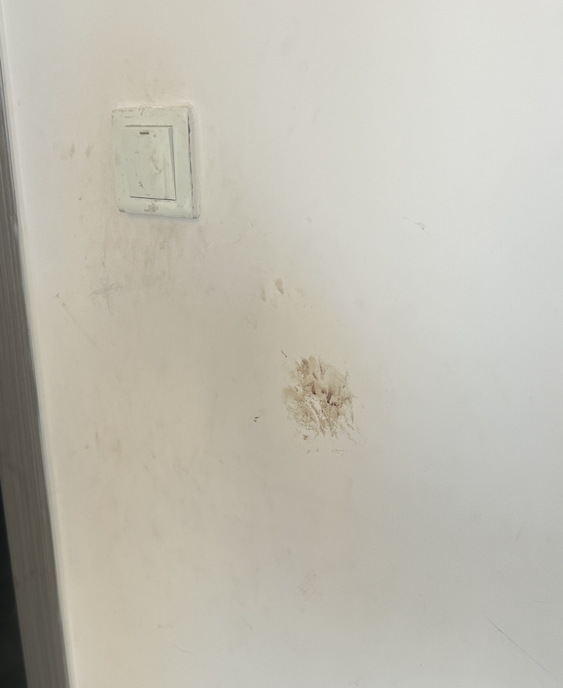 血迹还留在卧室的墙壁上。图/潇湘晨报记者摄。