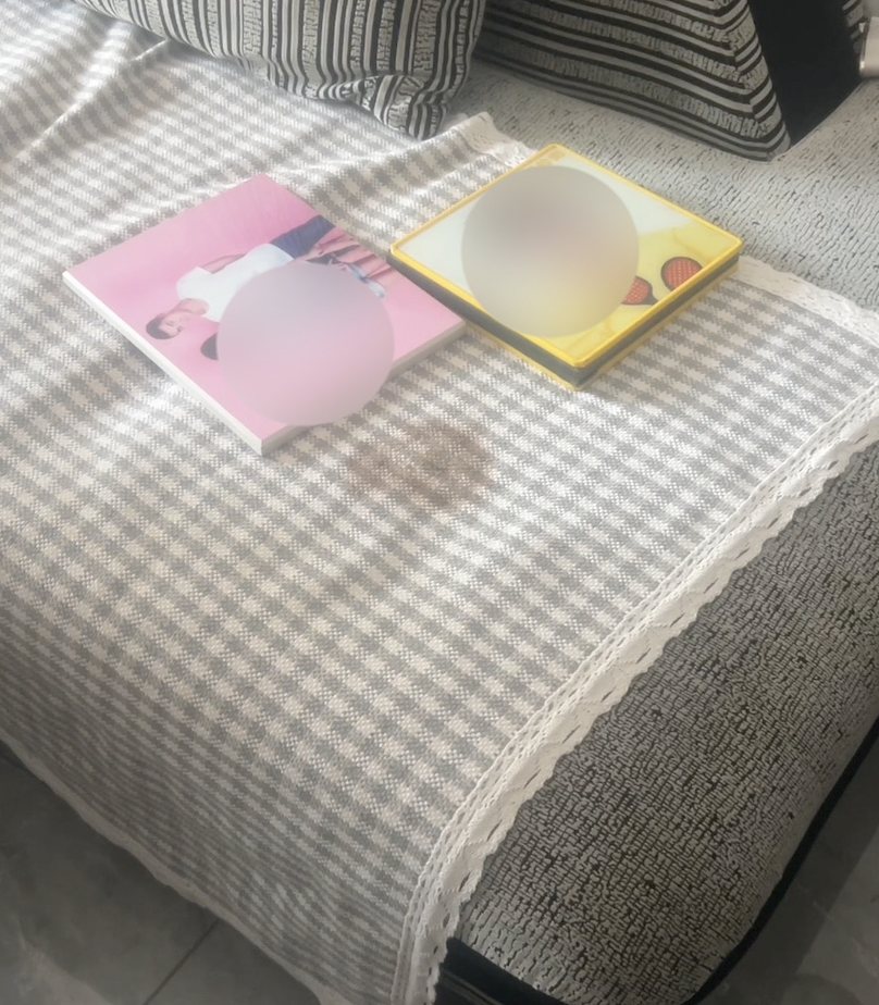 沙发上残留血迹。图/潇湘晨报记者摄。