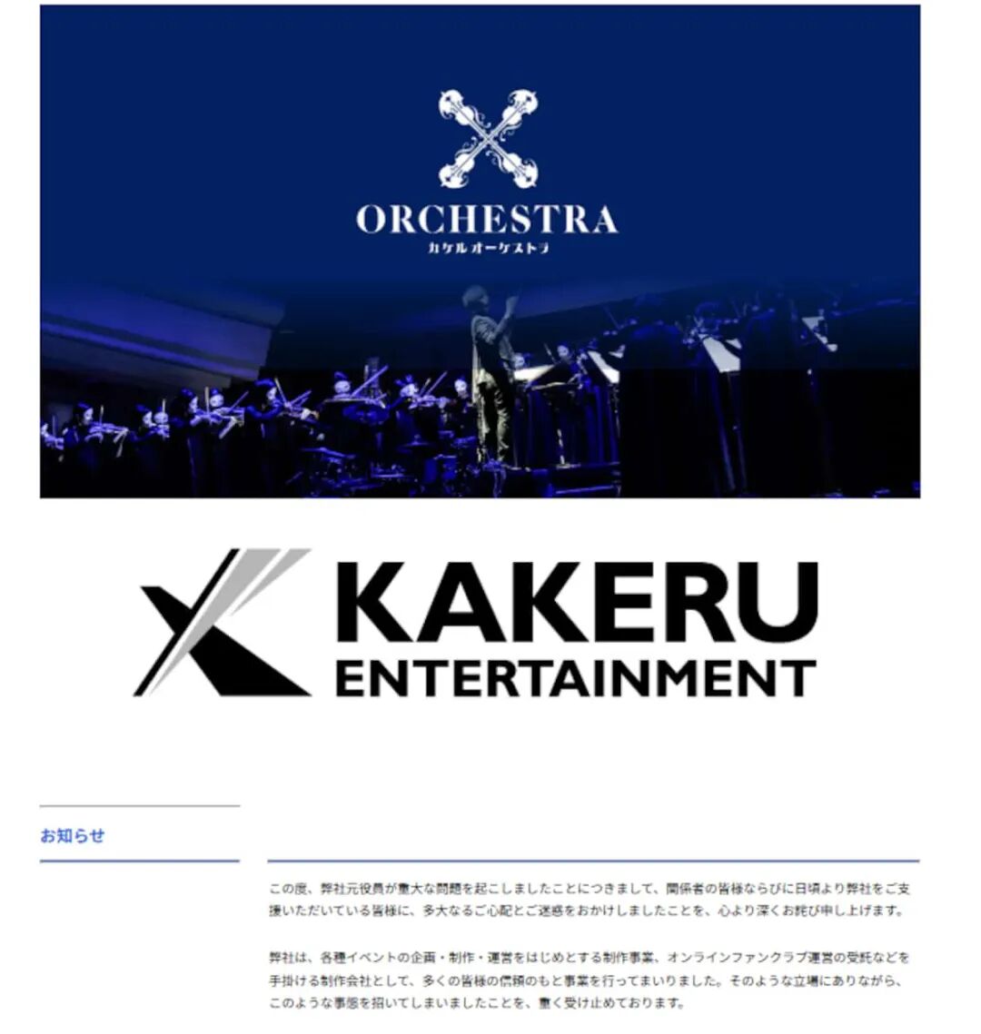 事情不断发酵,Kakeru Entertainment公司针对自家社长被捕事件也在官网发表了声明,称鉴于事态严重,已经对粟津彰予以解任,并将进一步强化公司内部体制,杜绝此类事件再发。