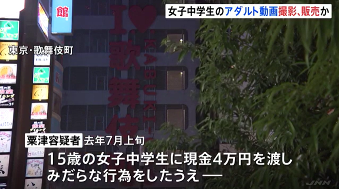 事情还要追溯到去年7月上旬,粟津彰在新宿歌舞伎町搭讪了一名女中学生,在明知对方未满16岁的情况下,以向其支付4万日元引诱对方至酒店。