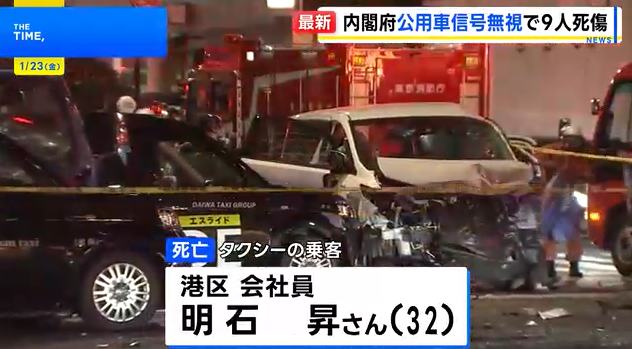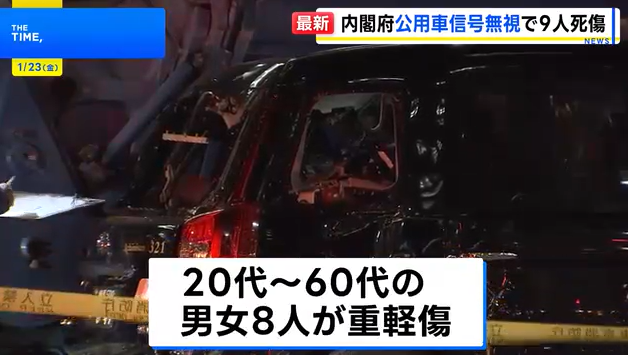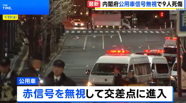 据日本警方和媒体报道,此次事故由一辆内阁府公用车疑似违反交通信号引发。
