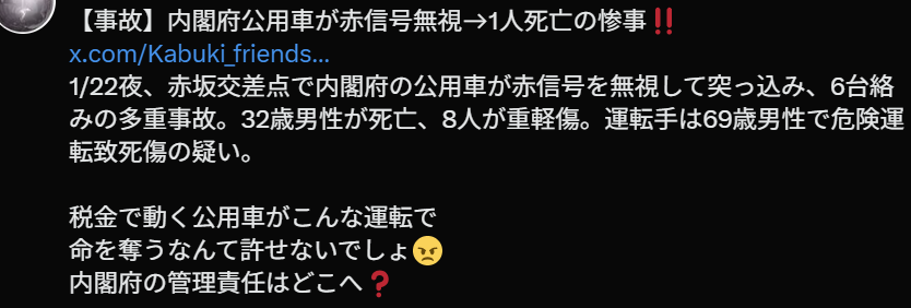 可以说,这起东京港区内阁府公用车事故,再次引发了日本公众对公务车辆管理、驾驶员责任以及行政机关透明度的关注。