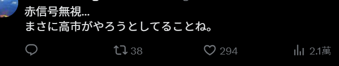 “无视红灯信号,真是高市能做出来的事。”