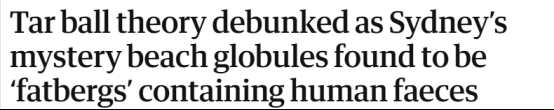 据报道,这些多次出现的球体来源于Malabar污水系统深处,体积相当于四辆悉尼公交车大小的一个巨型脂肪块。