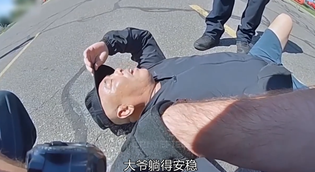 中国大爷在海外碰瓷警察,警察一碰就战术性躺地!