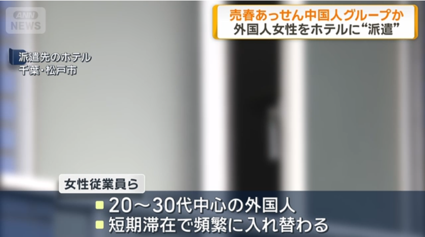 负责幕后运作的是6名中国籍男女,他们将20到30岁的泰国女性通过合法的短期观光、短期滞在签证带入日本后,集中把她们安排居住在酒店附近的公寓。
