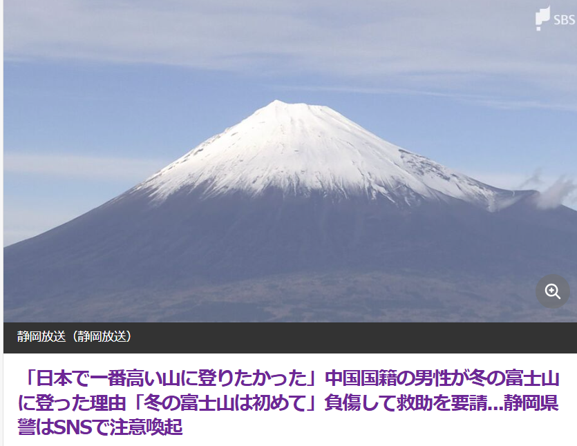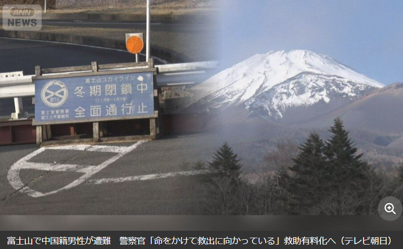 1月18日,一名居住在东京都新宿区、就读于专门学校的中国籍20岁男性,在冬季封山期间单独攀登富士山。