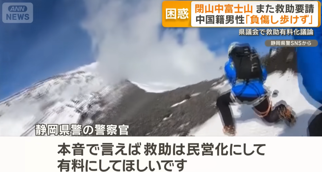 同时,静冈县已经在考虑将富士山救援立为付费服务。