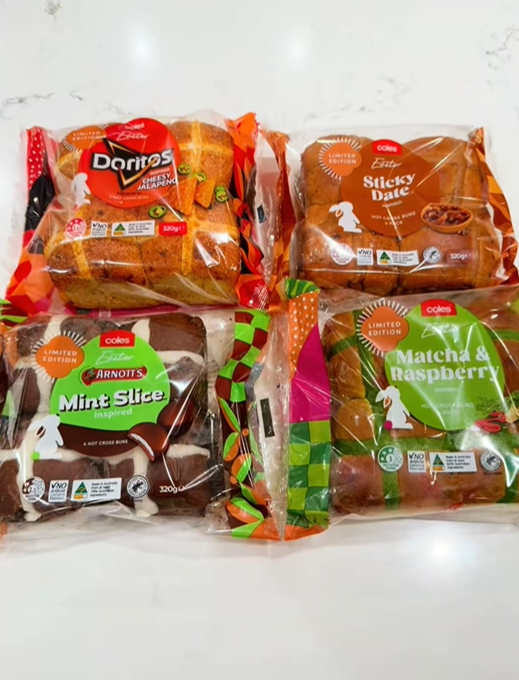 这些限量新口味将从2月起,在复活节期间于所有Coles门店和线上同步开卖,每包4个,售价5.50澳元。