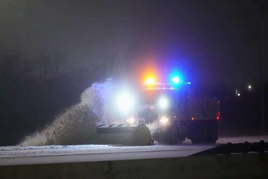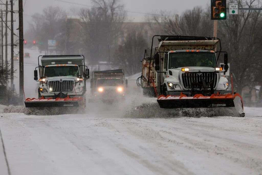 1月24日,美国俄克拉荷马州塔尔萨,铲雪车在路上工作。