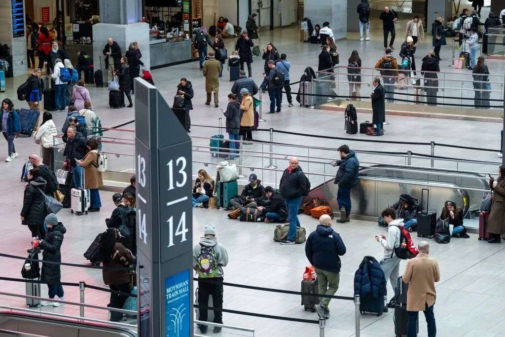 1月23日,美国纽约,宾夕法尼亚车站莫伊尼汉火车大厅内的旅客。