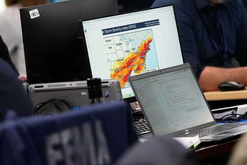 1月24日,美国华盛顿,联邦应急管理局(FEMA)总部,电脑上显示着冬季风暴严重性指数网站。
