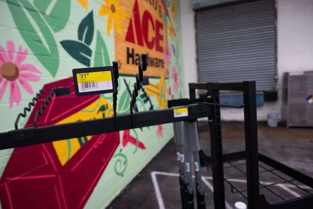 1月23日,美国宾夕法尼亚州费城,一家五金店的雪铲展示架空空如也。