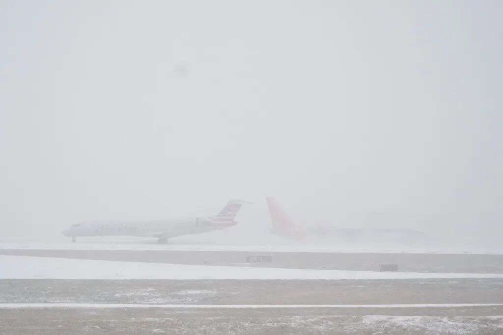 1月24日,美国田纳西州纳什维尔,飞机在纳什维尔国际机场的停机坪上移动。