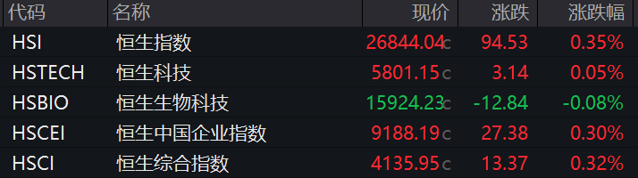 1月26日,香港恒生指数开盘涨0.35%,恒生科技指数涨0.05%。