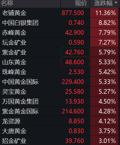 收藏老铺黄金、赤峰黄金、中国黄金国际,集体大涨