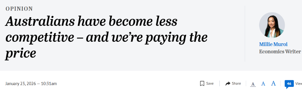 本周,澳媒就发表了一篇评论文章,直言不讳地指出澳洲的的竞争力已经下降,以及背后深层次的原因。