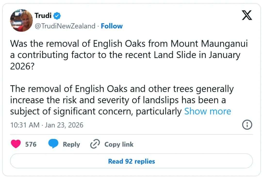 芒阿努伊山致命滑坡发生后,新西兰网络上一些人将其与此前山体“清理外来树种”联系起来。