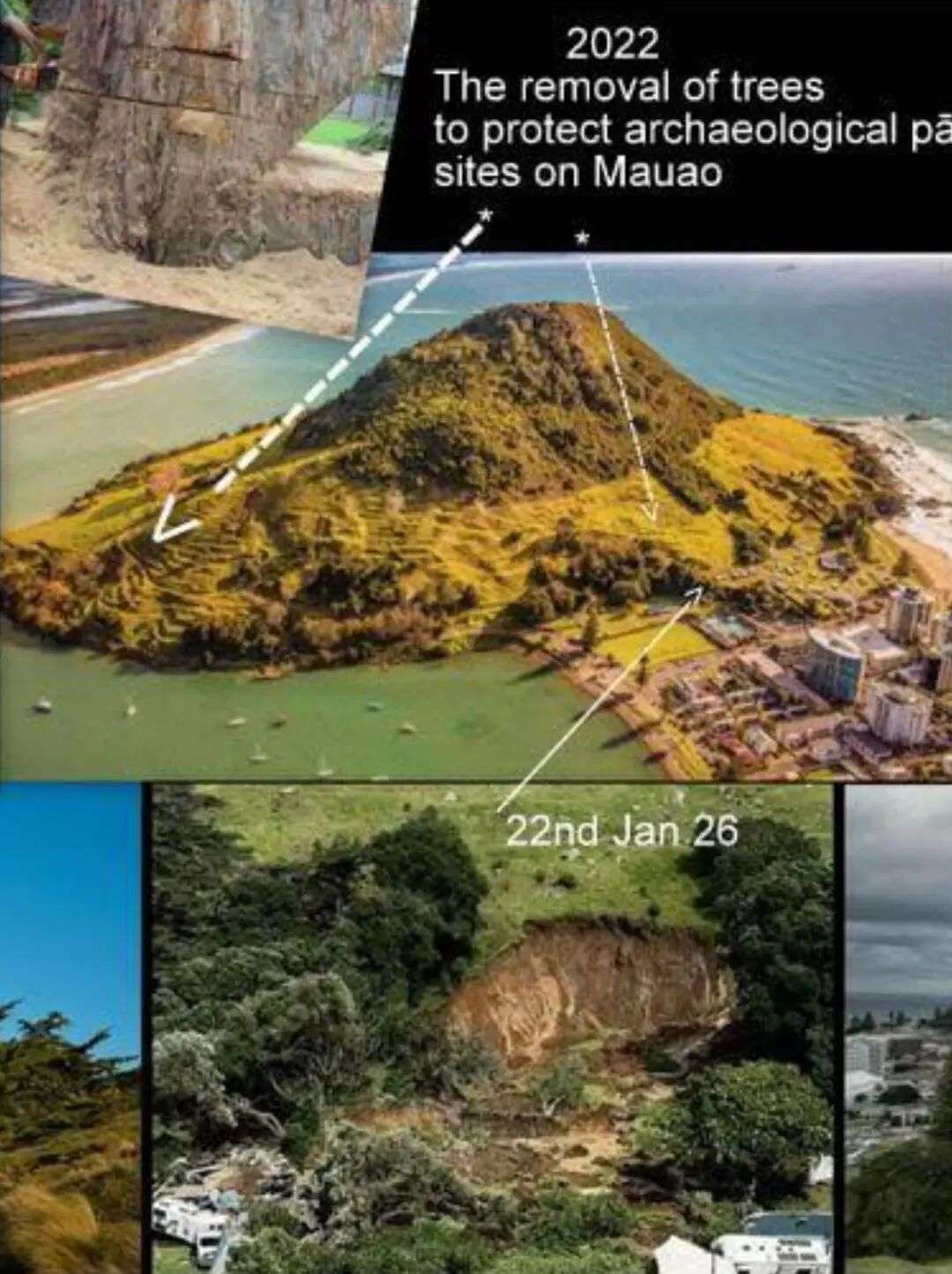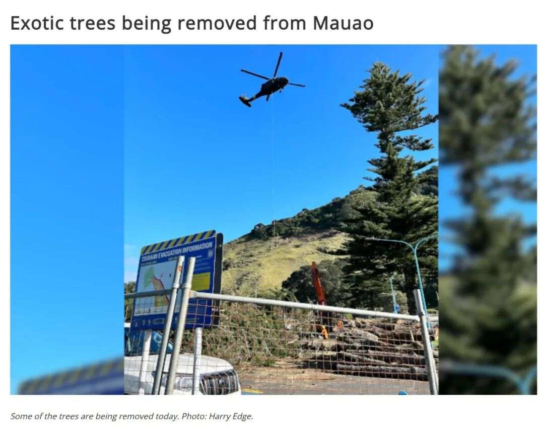 网上很容易查到当年报道——”外来树被从Mauao移除“(Mauao是芒阿努伊山毛利原名):