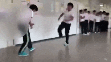 在施暴过程中,旁边还有数名同样矮小的学生们在围观、拍摄,他们笑得打滚,还在煽风点火:“加油加油!”仿佛在看一出戏剧,令人毛骨悚然。