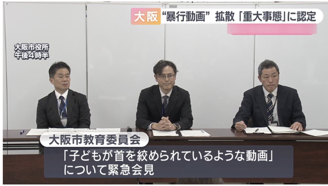 大阪市教育委员会在1月20日召开紧急发布会,对近期社交平台上疯传的锁喉扔海视频进行了回应。