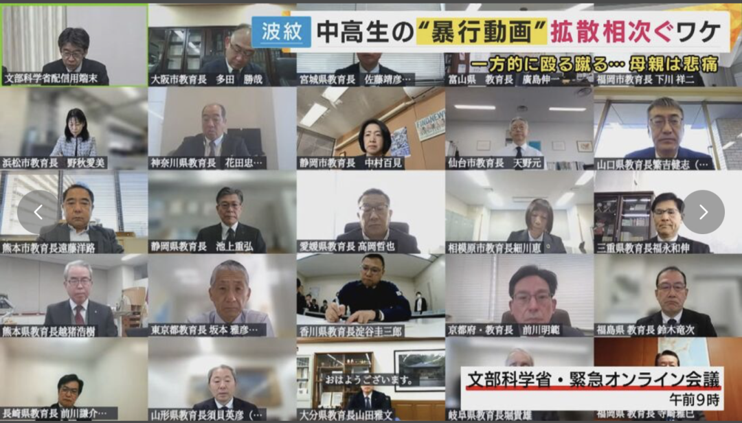 对于从今年年初开始疯传的日本各地校园霸凌视频,日本文部科学省在1月14日召开了全国都道府县和指定城市的教育紧急在线会议,商讨此类行为的应对方式。