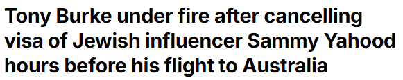 据报道称,被部长拦下的,是一名颇具争议性的犹太裔社交媒体意见领袖Sammy Yahood,而作出决定的,则是正处在舆论风口浪尖的内政部长Tony Burke。