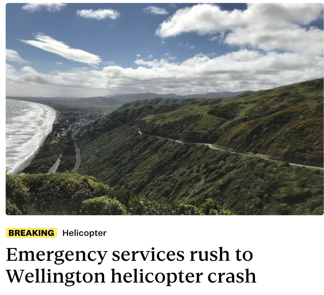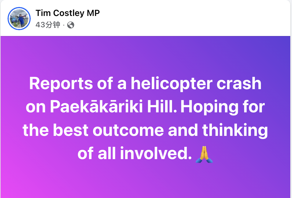 曾任新西兰皇家空军直升机飞行员的Ōtaki 选区议员Tim Costley在社交媒体上发布了有关坠机事件的报道。
