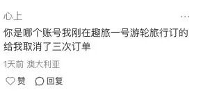 “你是哪个账号我刚在趣旅一号邮轮旅行订的,给我取消了三次订单。”