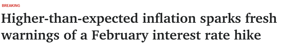 这一上行意外加剧了市场对2月加息的预期。随着通胀再次超过预测,交易者提高了进一步收紧政策的概率。