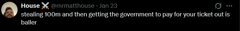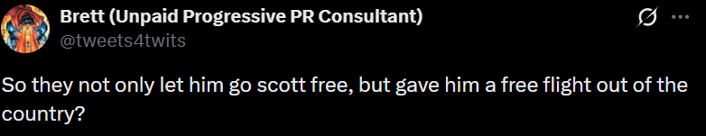 最后,有人总结式地问了一句:“所以,他不仅全身而退,还拿到了免费的出境机票?”