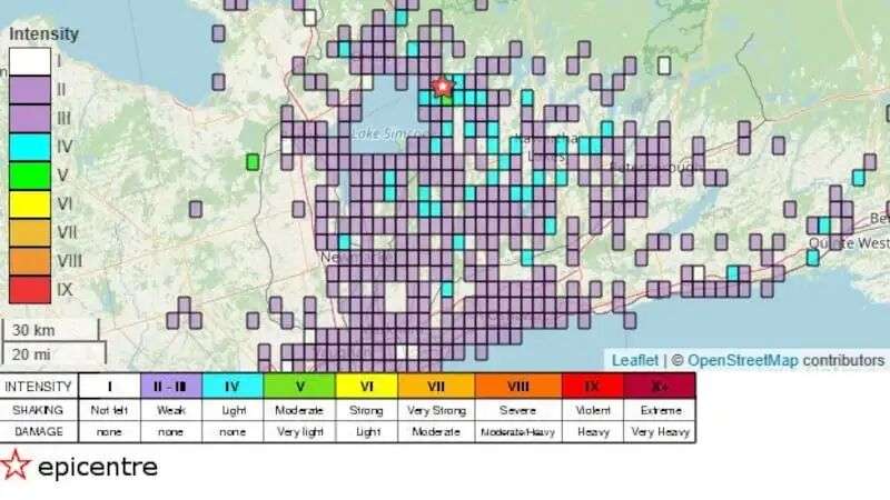从西边的基奇纳,到多伦多市区,再到东边的贝尔维尔,甚至远至尼亚加拉瀑布的南部地区,都有居民感受到了这次地震。