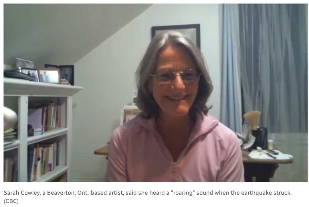 奥利维亚·陈(Olivia Chan)住在安大略省纽马克特,她说地震发生前她正在床上,突然感觉床开始摇晃,持续了大约5秒钟。