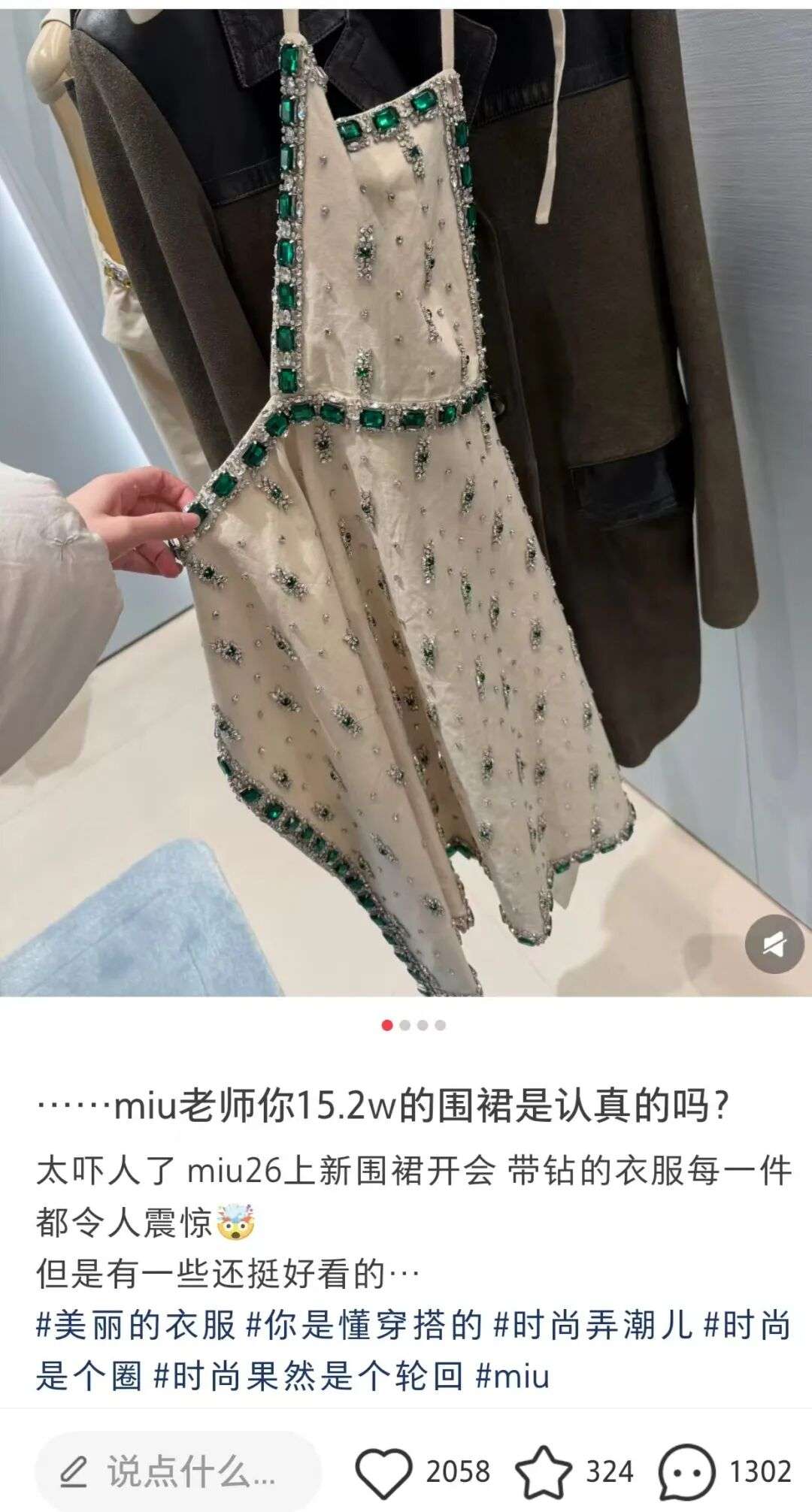 售价15.2万人民币,表面镶满钻石,Miu Miu 2026春夏系列的这条围裙式连衣裙,又火了!