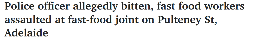 阿德CBD男子大闹KFC,撕咬袭警,面临多项指控!