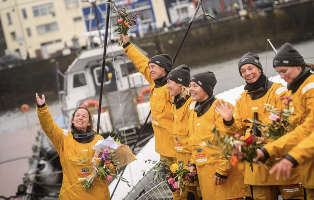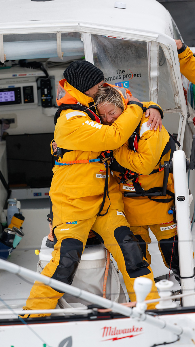 在海上航行近两个月后,船只最终抵达法国布雷斯特港的那刻,8名女性船员再也按捺不住内心的激动。